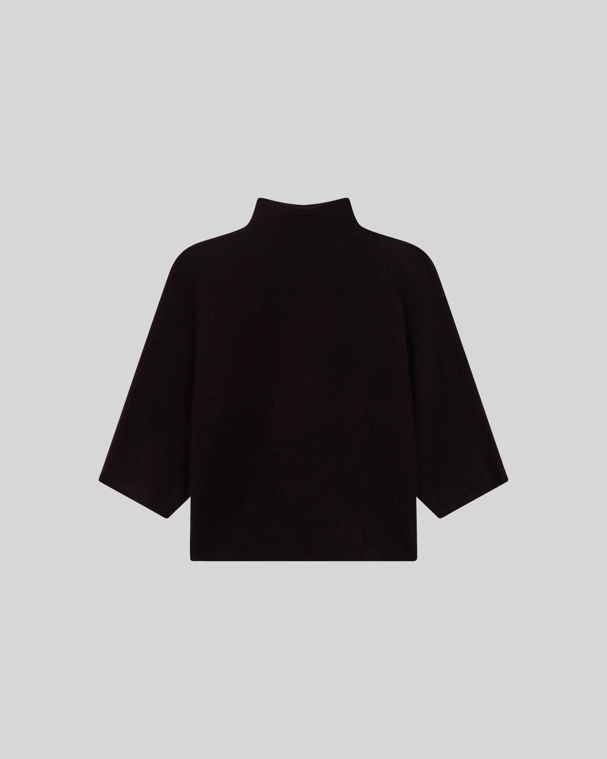 Pull aubergine Col Roulé Manches Kimono en Raccoon / Polyamide, à la maille naturellement chaude, ses manches kimono apportent une touche contemporaine et sophistiquée.