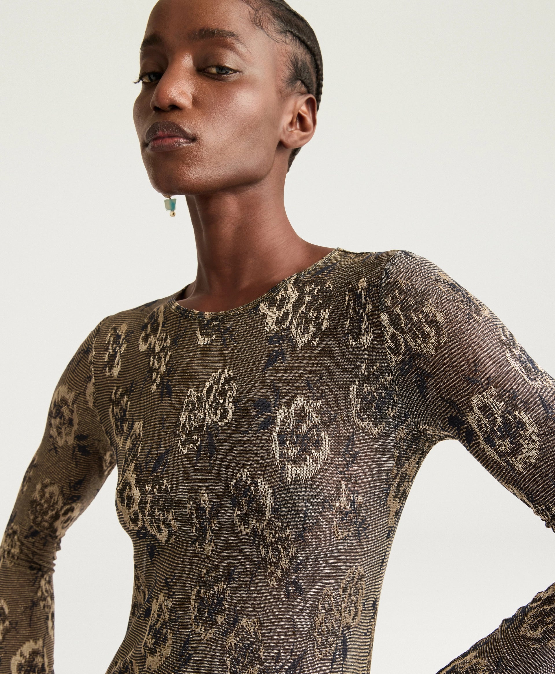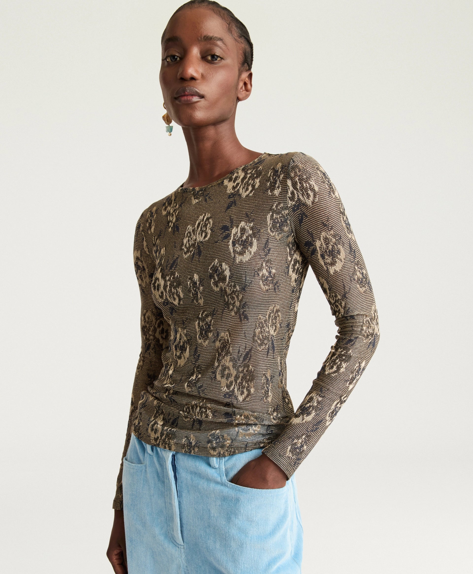 T-SHIRT à manches longues et col ras du cou en doux jersey jacquard lurex